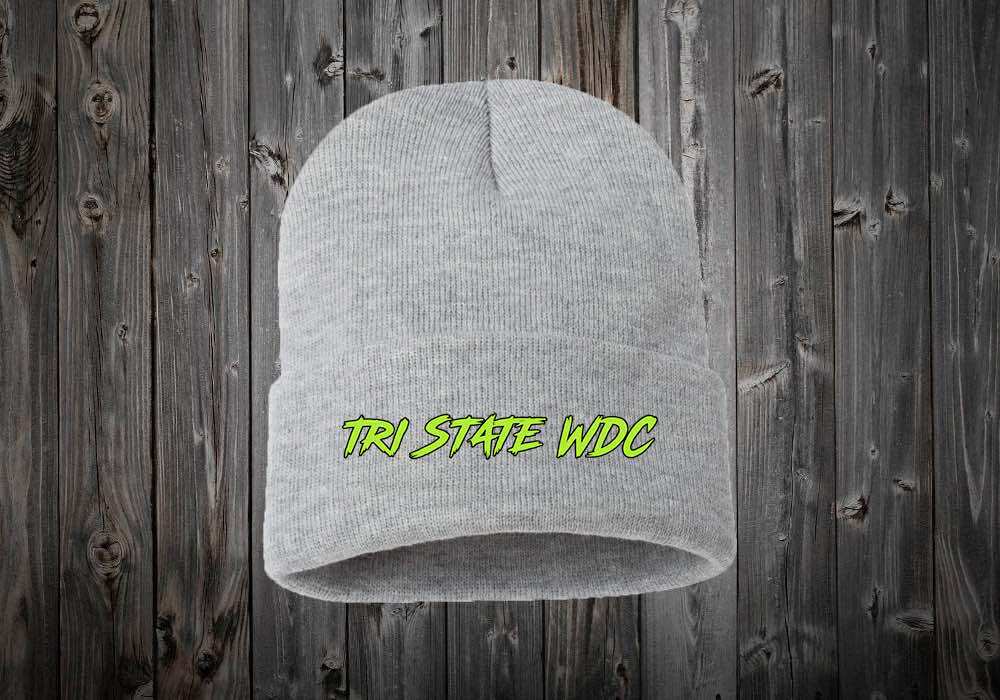 This soft, snug-fit beanie features the bold Tri State WDC logo embroidered in neon green—perfect for cold training days, trial mornings, or casual wear. One size fits most. color: Gray